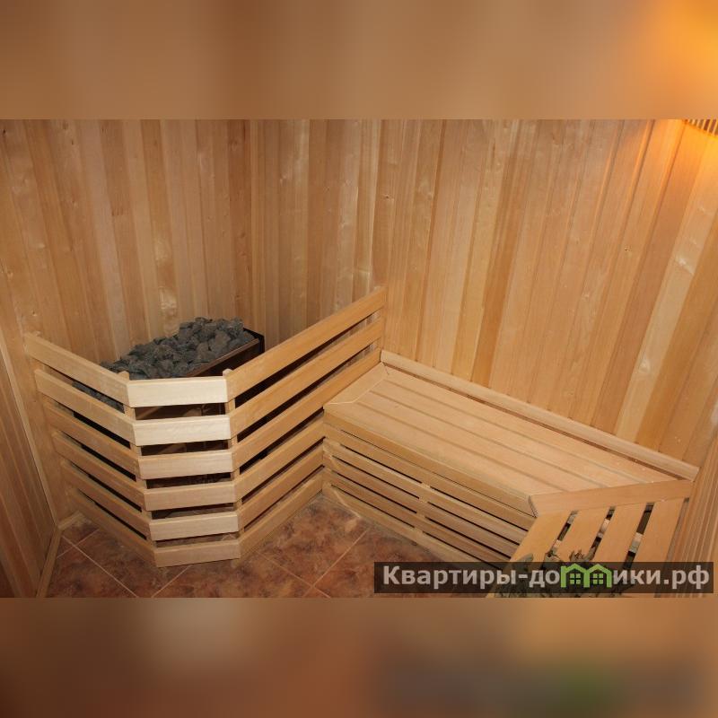 Цокольный этаж: кухня – 36 кв.м, сауна с комнатой отдыха – 40 кв.м, , спортзал с биллиардной – 36 кв.м, прачечная – 25 кв.м, котельная, санузел, вспомогательные помещения.