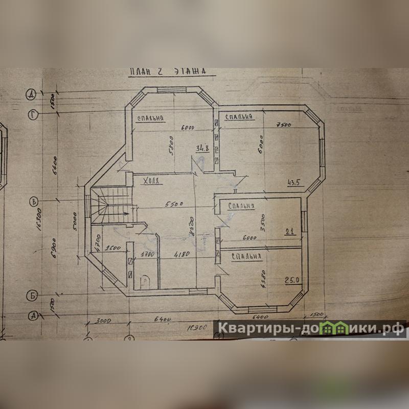 Второй этаж: четыре спальни – 43 кв.м, 35 кв.м, 25 кв.м, 21 кв.м, холл – 40 кв.м, санузел.