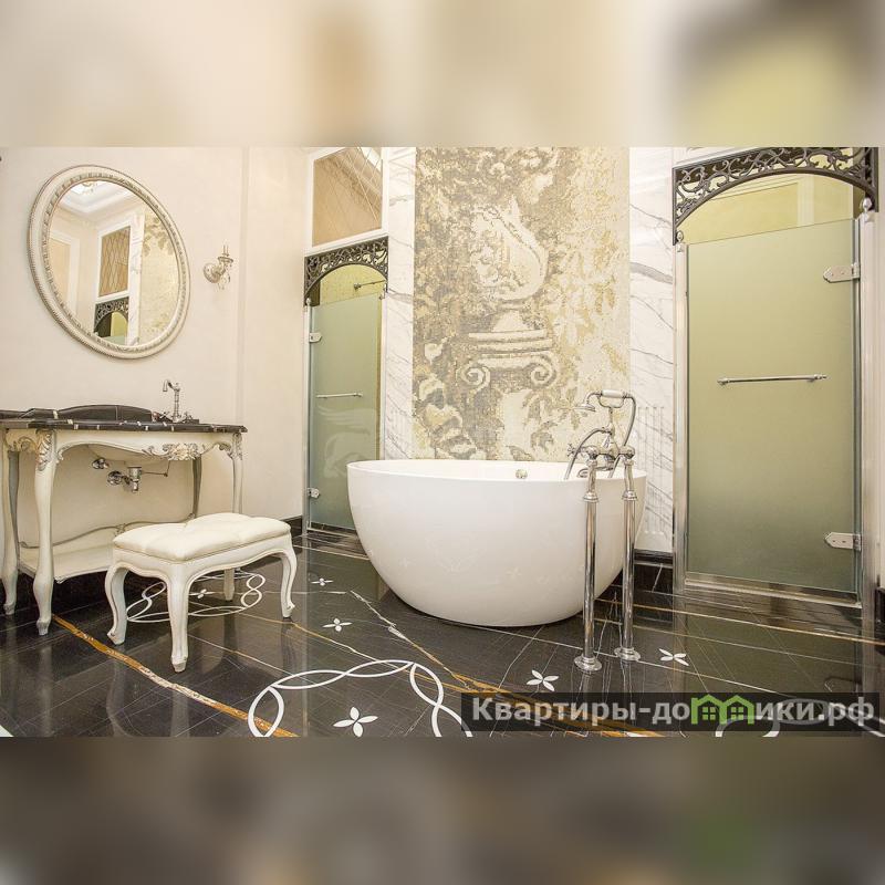 Комфортабельная квартира общей площадью 234.7 кв.м станет для вас местом отдыха и уединения. Гостиная 57.3 кв.м, кухня 20.5 кв.м, кабинет 21.7 кв.м с французским балкончиком 5.2 кв.м, спальная 26 кв.м с ванной 14 кв.м и хозяйственной комнатой 1.5 кв.м, спальная 22.2 кв.м с балконом 3.9 кв.м и с гардеробной на две спальни 13.2 кв.м, ванная комната 12.9 кв.м, холл 24.3 кв.м, прихожая 10.3 кв.м с гардеробной 1.8 кв.м, высота потолков 3.5 м. Уникальный дизайн-проект с использованием эксклюзивных материалов, мебели и элементов декора, изготовленных на заказ отличаются замысловатостью архитектурных и художественных решений: