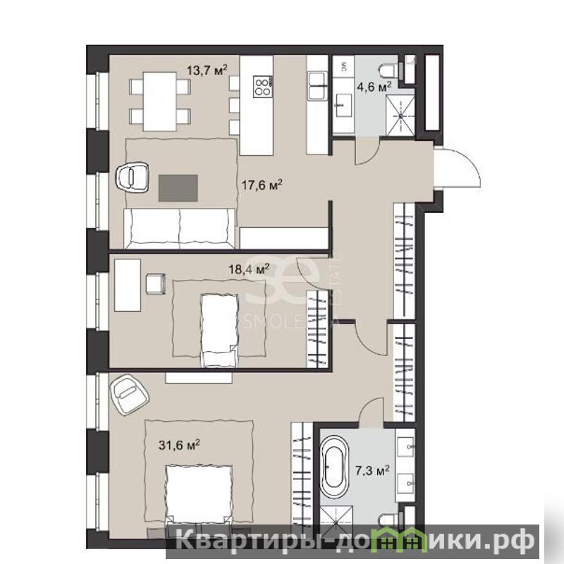 Продажа квартиры общей площадью 107.60 кв. м. в комплексе класса Deluxe "Ордынка", в историческом центре Столицы. Планировочным решением предусмотрены спальня, просторная гостиная, объединенная общим пространством с кухней.