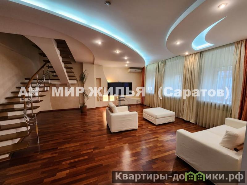 Сдается в аренду двухуровневая квартира в центре города (Большая Казачья/Максима Горького). Современный дизайн, европейский стиль, качественный ремонт, фешенебельный интерьер. Мягкая и корпусная мебель, есть вся необходимая в быту техника. 2 санузла, установлены ванна и душевые кабины. Закрытая придомовая территория. Элитный таунхаус в историческом центре Саратова, непосредственная близость проспекта Кирова, театра оперы и балета, Театральной площади, Радищевского музея и множества других достопримечательностей. Насыщенная инфраструктура с огромным количеством магазинов и сетевых универсамов, кафе, баров и ресторанов, аптек, салонов, банков, учебных и медицинских центров, салонов, торговых центров и галерей, банкоматов и платежных терминалов.