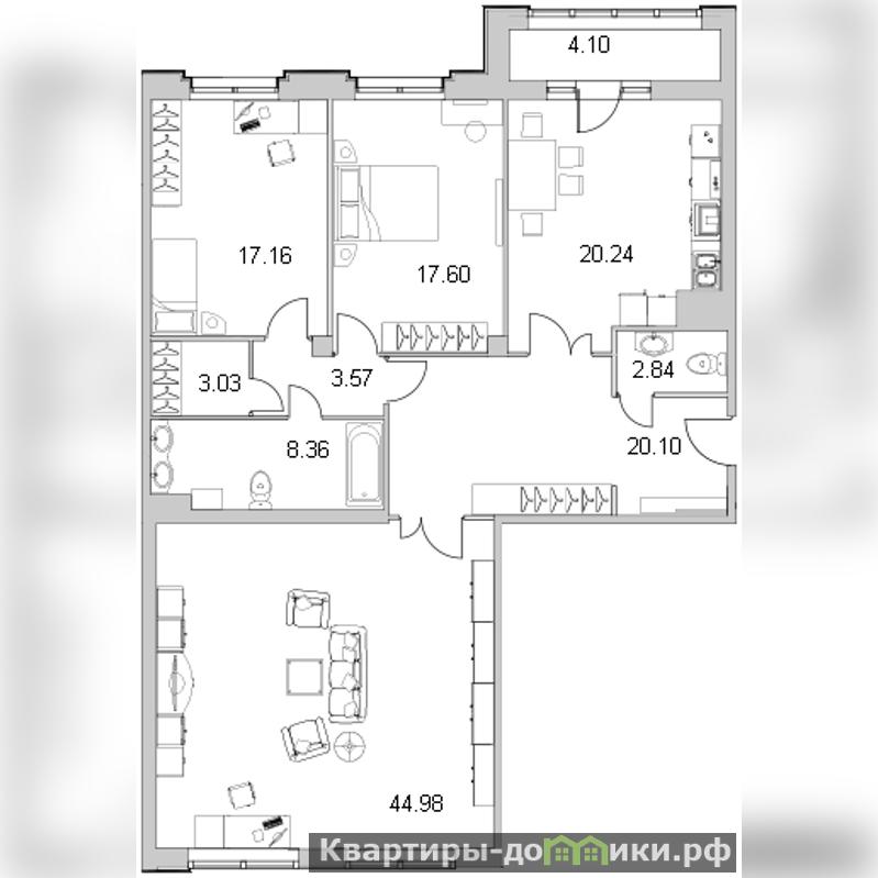 | 45 + 17.6 + 17.2 м2 | |