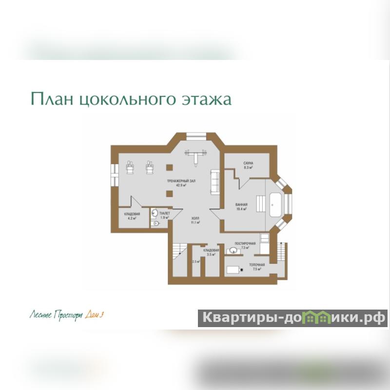 санузлом. Цоколь: тренажерный зал,