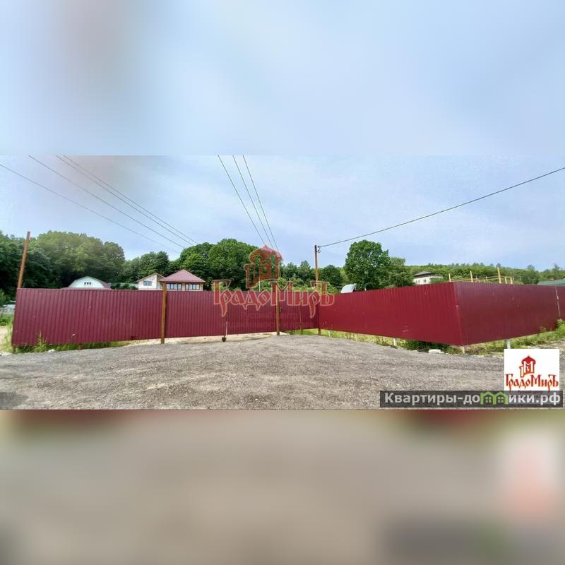 Дом с участком правильной формы 8 соток огорожен забором из проф листа.
