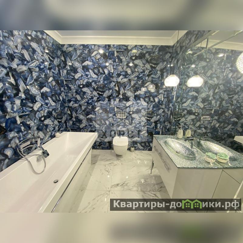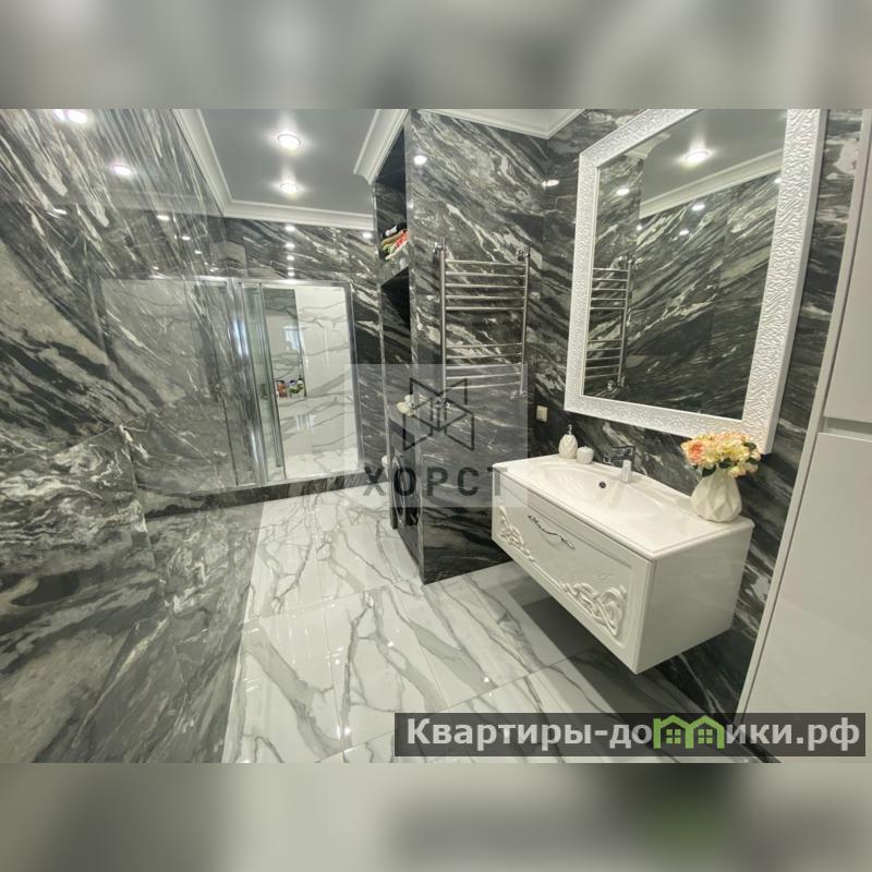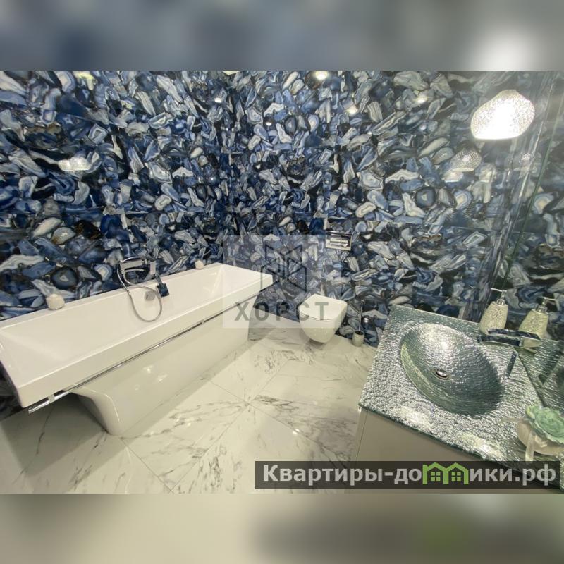 Кухня изготовлена из массива дерева. Люстры ,бра -Богемия . ( в гостиной ,спальне ,на кухне - по 2 люстры ). 2 сан узла : в одном сан узле -ванна ,изготовленная из мрамора; в другом -душевая, стиральная машина.