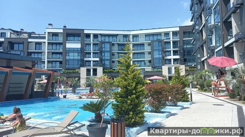 Продаю апартаменты в комплексе элит-класса площадью 59,72 кв.м. на 5-м этаже 7-ми этажного монолитного дома. Закрытая территория с охраной, пропускным пунктом и видеонаблюдением. На территории комплекса бассейн, ресторан, бар, детская площадка, магазин. Прогулочные зоны и прекрасные виды на море, город Сочи и на горы.