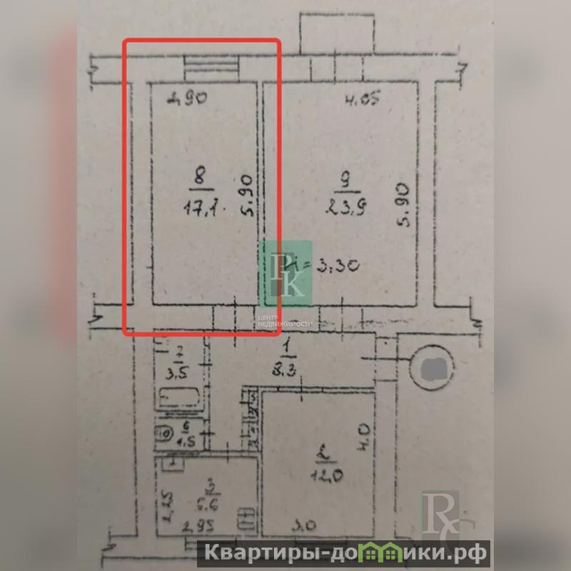 Комната в трехкомнатной квартире 17,1 м2, на 2/3 этаже дома. Расположена в г. Севастополь, Ленинский район, ул. Большая Морская, д. 38.