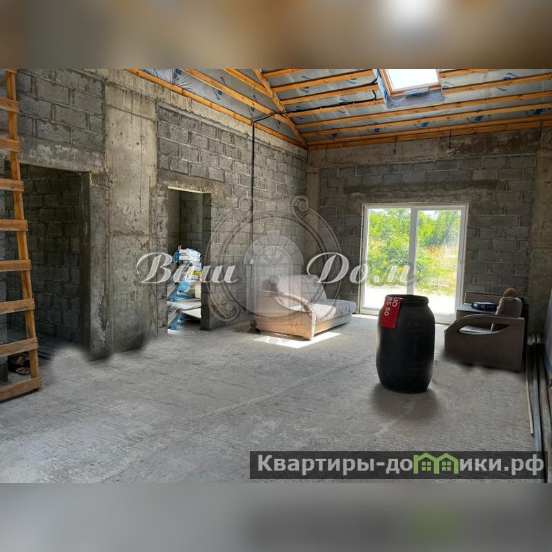 - Надёжный дом из железобетонного основания, заполнение стен блоком с утеплением и металлочерепицей на крыше.
