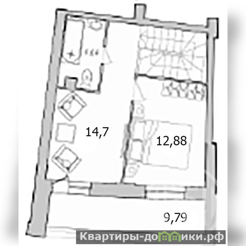 Квартира занимает 2-й и 3-й этажи, окна на две стороны - на зелёный массив жилого комплекса и во двор (ЮЗ и СВ). На первом уровне - комната, огромные кухня и холл с гардеробной, сан.узел. На кухне площадью более 25 кв.м два окна, поэтому, при желании, двухкомнатную квартиру легко превратить в трехкомнатную. На втором этаже - лестничный холл площадью почти 15 кв.м, который удобно использовать в качестве жилого помещения, спальня, ещё один сан.узел и лоджия с остеклением в пол