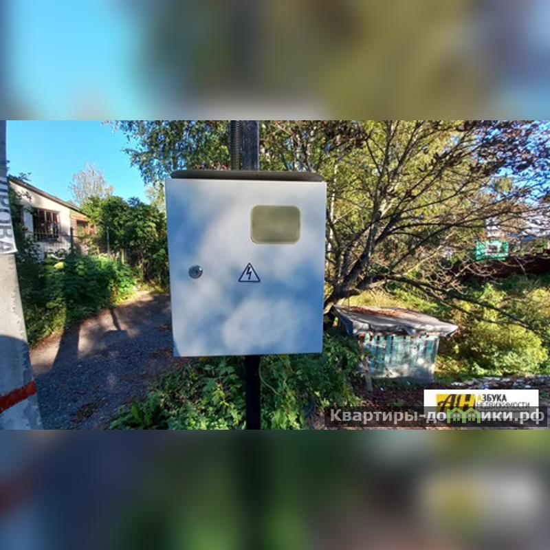 Площадь участка составляет 6,3 соток. Участок зеленый, ровный, сухой, ухоженный, огорожен по всему периметру, имеется дополнительный выход на задней части участка. На участке растут плодовые деревья, жимолость, ягоды, кустарники. К дому ведет хорошая асфальтированная дорога, придомовая территория с удобной парковкой на 2-3 автомобиля. Также имеется две бытовки для хранения садового инвентаря и прочих нужд, детские качели, батут, зона отдыха барбекю.