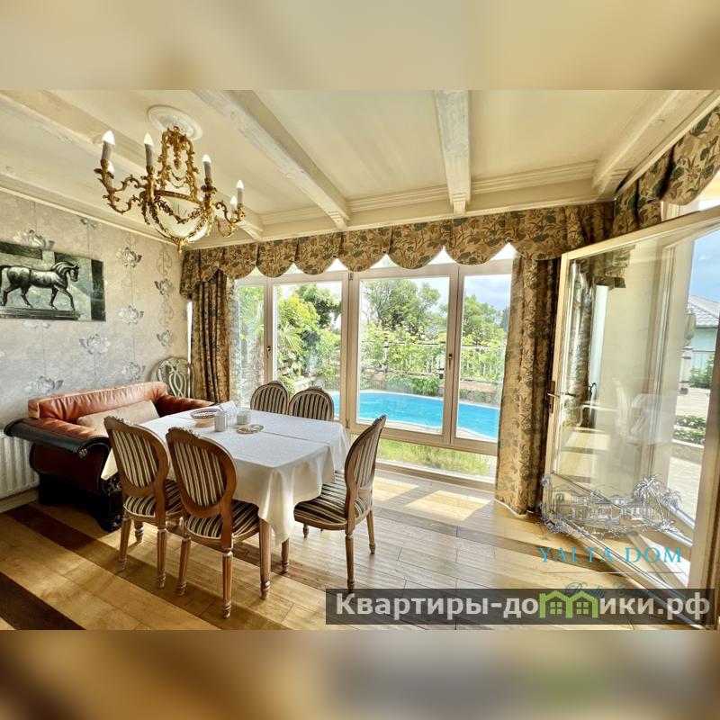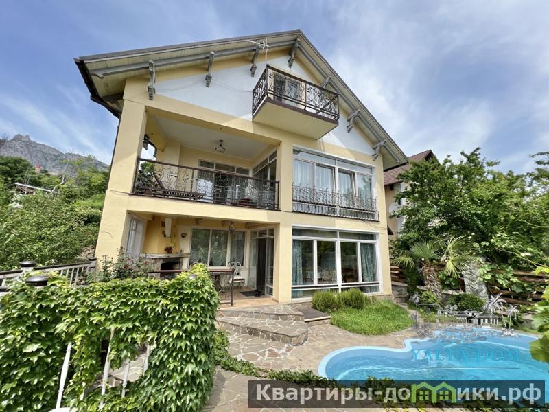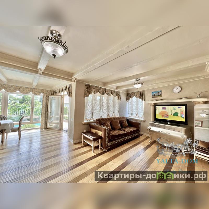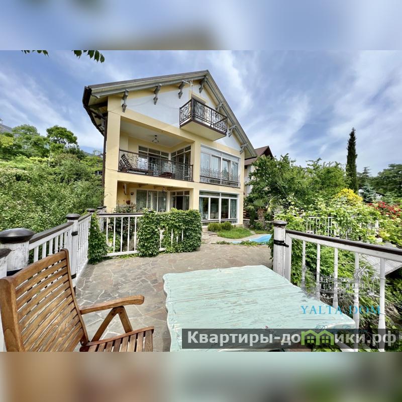 Сервис бронирования Ялта-Дом Р Ф предлагает - Трех этажный современный дом - 230 квадратных метров включая каминную комнату, примыкающую к дому. Находится в тихом, экологически чистом районе Южного побережья. На двух этажах дома расположены уютный холл-гостиная с мягкой мебелью, совмещённая с оборудованной кухней-столовой, четыре изолированные спальни, три санузла, финская сауна, бассейн, зона барбекю и подсобные помещения. Спальни второго этажа имеют выходы на видовую открытую террасу, и видовой балкон - с которых открывается вид на море и гору Ай-Петри. Современная импортная мебель, отделка класса люкс, новая бытовая техника и много разных полезных и приятных мелочей. Все помещения дома кондиционированы.