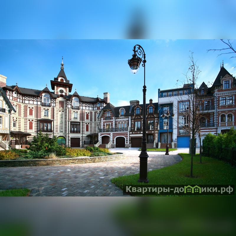 Территория загородной локации – 64 Га, где расположено более 160 домовладений. Нарядные резиденции и таунхаусы со шпилями, башенками и красивыми мансардами образуют тихие и уютные кварталы. Облик элитного поселения определен нормандским стилем и дворцовой французской архитектурой. Каждый элемент отделки выполнен по авторскому эскизу.