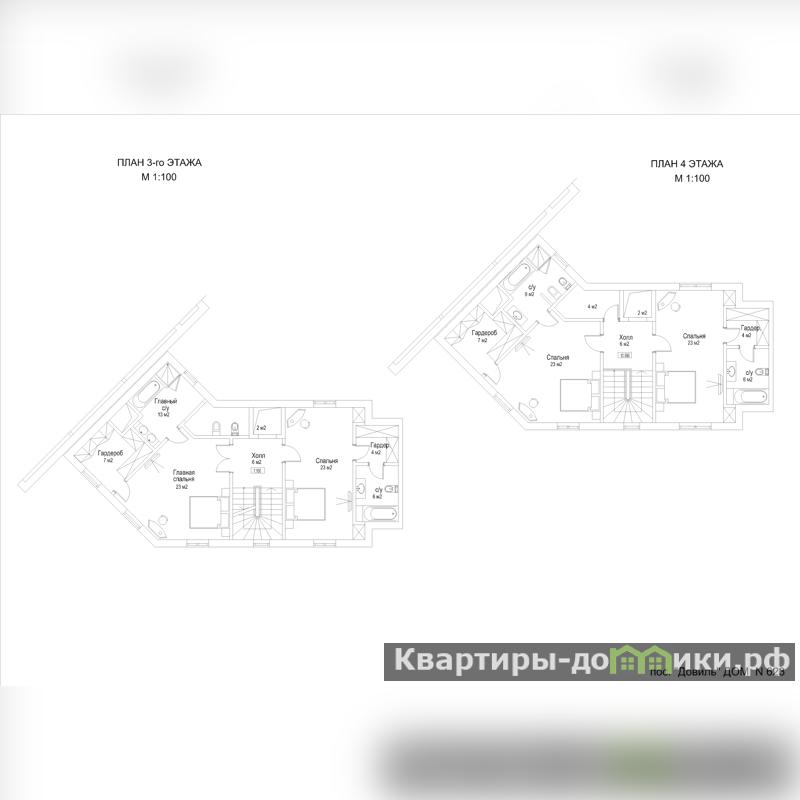 Планировочным решением предусмотрено 3 этажа, 4 уровня, 4 спальни. 1 уровень - холл, кабинет, с/у, гардеробная, кладовая; 2 уровень - гостиная, кухня-столовая, с/у; 3 уровень - холл, 2 спальни, 2 с/у, 2 гардеробные;4 уровень - холл, 2 спальни, 2 с/у, 2 гардеробные. Гараж в контуре дома.