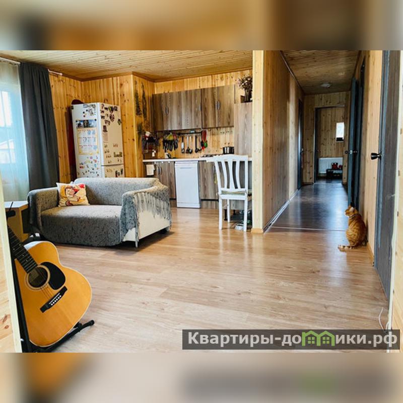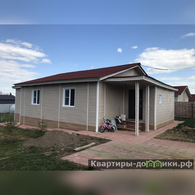 Арт. 36234446 Обжитой дом в тихом поселке.<br/>Возможна ипотека.<br/>Продается полностью готовый к проживанию 1 эт. дом 104 м2 в КП Вишневый Сад 2 в Клинском районе рядом с дер. Алексейково.Удобно добираться по Новорижскому, Волоколамскому, Пятницкому шоссе, а также трассе М-11.78 км от МКАД.<br/>Поселок активно застраивается. Некоторые живут постоянно.Хорошие отсыпанные дороги, Обустроена детская площадка,На въезде автоматические ворота, открывающиеся с телефона.Однородное и дружелюбное окружение.<br/>Дом 2021г. постройки расположен в дальней части поселка, на тупиковой улочке у перелеска.Блочный высокий фундамент, материал стен брус 150Х100. Утеплен. Обшит светлым сайдингом.Крыша ондулин.Окна двойной стеклопакет.Вокруг дома сделана отмостка из плитки. <br/>Компактная и удобная планировка всех помещений удовлетворит самый изысканный вкус.Крыльцо, холл, коридор, кухня-гостиная с камином, три отдельных комнаты (спальня, детская, кабинет), с/у с ванной, бойлерная.Из гостиной выход на уютную теплую террасу. Из нее есть второй выход на участок.Дом полностью и со вкусом меблирован и готов для жизни.<br/>15 кВт, прямой договор с МОЭСК.Колодец 22 метра, септик (2 бетонные кольца).Отопление жидкостное от электрического котла (6 кВт). Разведено по всем помещениям.В гостиной уютный металлический камин (дрова, брикеты) создающий дополнительное тепло и уют длинными зимними вечерами. Спутниковое ТВ, мобильный интернет через роутер МТС.<br/>Ровный участок правильной прямоугольной формы 8 соток со всех сторон обнесен забором (деревянный штакетник). Выровнен, обработан.Соседи только с двух сторон. Построились.С третьей стороны - пустующий (не выкупленный) участок. Есть возможность расширения. Механические распашные ворота, калитка. Обустроена парковка для авто, выложенная плиткойПосажены саженцы плодовых и декоративных растений.На участке хозблок для инструментов и инвентаря, теплица 3Х4м..<br/>В шаговой доступности у соседнего поселка продуктовый магазин.В 3 мин езды вся инф...