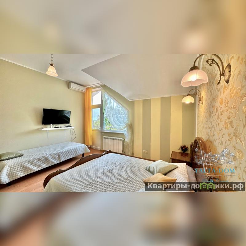 Ceрвис бpoнирования Ялта-дoм прeдлагaет - Двухэтажный с прекрасным видом на побережье расположен в Кореизе. Дом с двумя спальнями, площадью 122 кв.м2, на территории 6 соток. Красивейшая территория с ландшафтным дизайном, с фруктовыми деревьями, а так же с растениями из ботанического сада. В саду располагается беседка из натурального дерева, зона барбекю и декоративный пруд с мостиком. Из окон дома открывается прекрасный вид на побережье и горы. Парковка на три автомобиля. Дом с хорошим ремонтом ,новой мебелью и бытовой техникой.