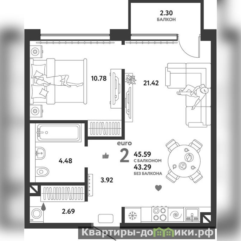 Предлагаем Вашему вниманию просторную однокомнатную (ЕВРОдвухкомнатную) квартиру в доме бизнес-класса "Жилого комплекса WOW". Действуют льготные ипотеки от 3%. Общая площадь квартиры - 45, 59 кв.м. Кухня-гостинная - 21, 42 кв.м.