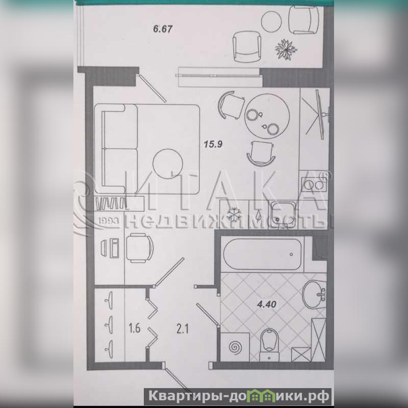 1-84403 Предлагаем Вашему вниманию, квартиру-студию в современном жилом комплексе бизнес-лайт: Квартал Che. Студия расположена на 10 эт.: комната-15.9 кв.м., совмещенный санузел-4.40кв.м., гардеробная-1.60 кв.м., балкон-6.67 кв.м., холл-2.10 кв.м., парадная 3.