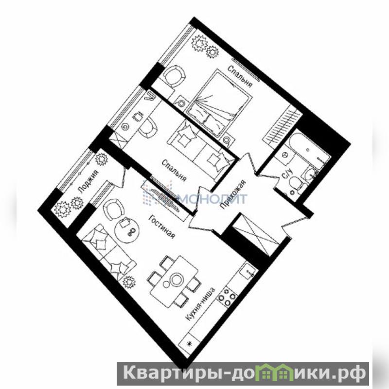 Общая площадь 59.9 кв.м. 15 этаж.