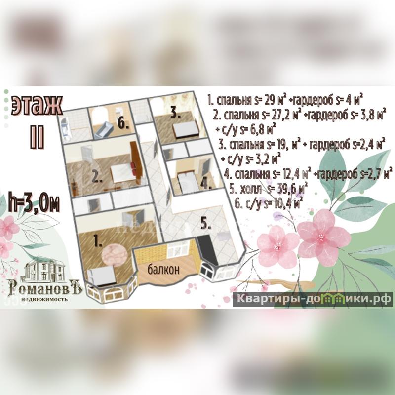 - три санузла (один их холла, два в мастер - спальнях: один в большой, второй в маленькой);