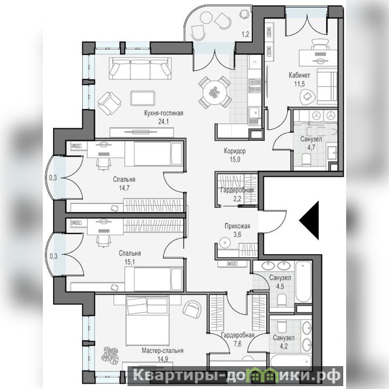 Предлагается четырёхкомнатная квартира с кухней-гостинной 24,1 кв.м. в доме премиум-класса "Достижение" рядом с огромным зелёным парком площадью 651 гектар. Льготная и семейная ипотеки! Общая площадь квартиры - 122,5 кв.м. Кухня-гостинная - 24,1 кв.м. Хозяйская мастер-спальня 22,5 кв.м. с индивидуальным санузлом 4,2 кв.м. Три раздельные комнаты - 15,1 / 14,7 / 11,5 кв.м. Санузел раздельный - 4,7 / 4,5 кв.м. Прихожая - 3,6 кв.м. Коридор - 15 кв.м. Гардеробная - 2,2 кв.м. Балконы - 1,2 / 0,3 / 0, 3 кв.м. Высота потолков - 3, 15 м. В ЖК Достижение функционируют все системы комфорта: вентиляция и фильтрация воздуха, очистка воды, круглогодичное горячее водоснабжение, круглосуточная охрана и огороженная территория. Служба сервиса работает по стандарту Sminex Premium Service. Также в проекте предусмотрен фитнес-клуб по стандарту FIT LAB от Sminex, собственная смотровая площадка на крыше, частный детский сад, развивающая детская площадка и игровая комната по стандарту KIDS LAB, а еще уникальная общественная гостиная с открытой террасой Для автовладельцев спроектирован двухэтажный подземный паркинг на 835 мест. Во дворе дома на площади 1, 7 га создан ландшафтный двор. Предусмотрен большой классический фонтан на центральной площади, уютный пруд с лавочками и тихие зоны для отдыха, 5 пеших маршрутов для променада, а также отдельные зоны активного отдыха: детская площадка, универсальная спортивная площадка и зона workout, зона для пикника. Комплекс Достижение возводится в СВАО столицы в районе Марфино. В пешеходной доступности от дома работают общеобразовательные и дошкольные учреждения, супермаркеты, поликлиника, ТРЦ, спортивные и культурные объекты и несколько больших парковых зон, в числе которых парк Дубовая роща, парк Останкино, ВДНХ и Ботанический сад. Дом расположен близко к центру города: 3 станции до Цветного бульвара, 8 минут ходьбы до станции метро Бутырская, Станция Останкино - 150 метров, 15 мин на автомобиле до Садового кольца.Детские сады: My Sadik - 1100 м Друзья - 1400 м Венда - 1400 м.Школы: 1236 им. Милашенкова 1 - 600 м 1494 - 600 м. Специалисты АН Лидер -Тверь готовы помочь Вам решить любой жилищный вопрос. Вы планируете продажу, покупку, обмен, или расширение Мы АН Лидер -Тверь, поможем с реализацией Вашего объекта недвижимости, Произведем Срочный выкуп вашей квартиры, подберем вам оптимальный вариант решения вашего вопроса, подготовим сделку в один день. Подберем оптимальные условия ипотечного кредита, отправив заявки на получение кредита сразу в несколько банков, напрямую из офиса агентства. А также предлагаем полный комплекс услуг по ремонту и отделке квартир, качественный ремонт по доступной цене.