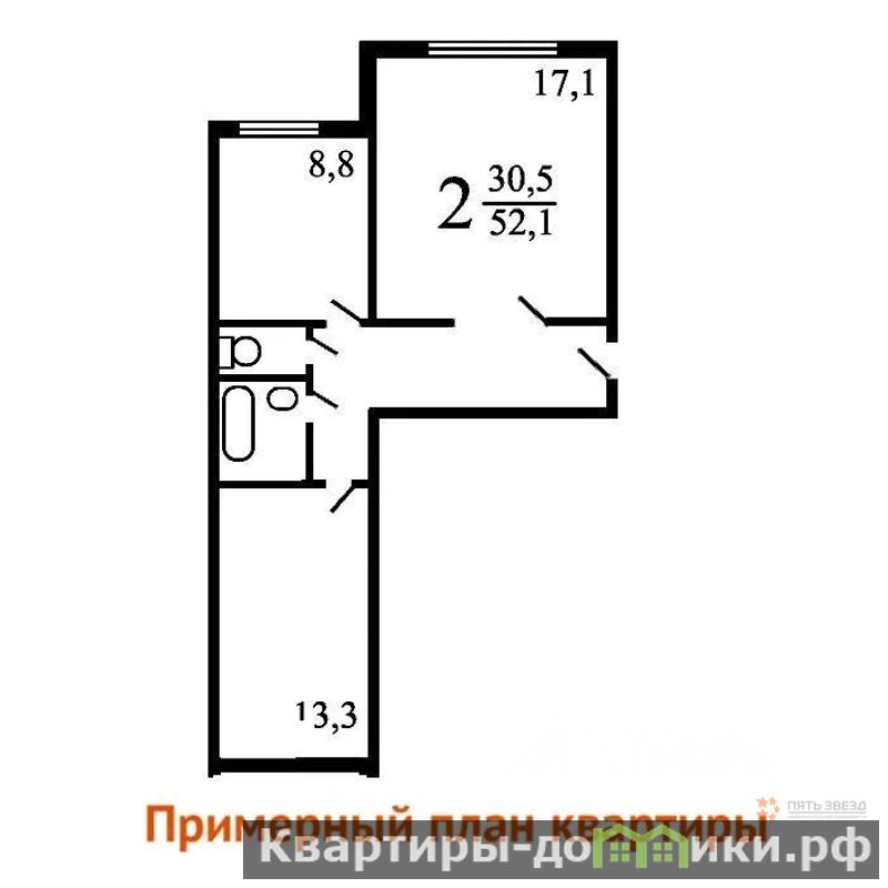 * Площадь: общая 52, 3 кв. м, жилая 30, 4 кв. м.