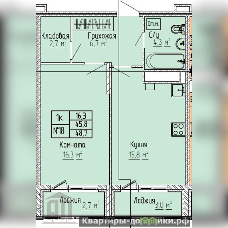 с/у совмещенный, 2 лоджии., кладовка.