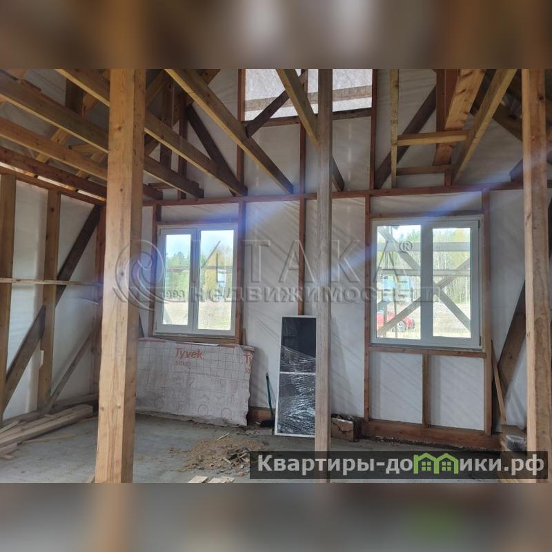 Дом: назначение – жилое, площадью 49.4м2 + мансардный этаж. Дом введён в эксплуатацию, но не достроен. Каркас дома выполнен из ЦСП, установлен на железобетонной плите, задел в стенах выполнен под утеплитель 100мм. Крыша покрыта гибкой черепицей. Установлены стеклопакеты.