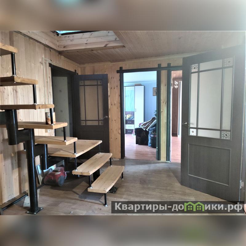 Дом построен из бревна. Второй этаж полностью без отделки. Фундамент - ленточный. Перекрытия - деревянные. Крыша покрыта металлочерепицей, утеплена.
