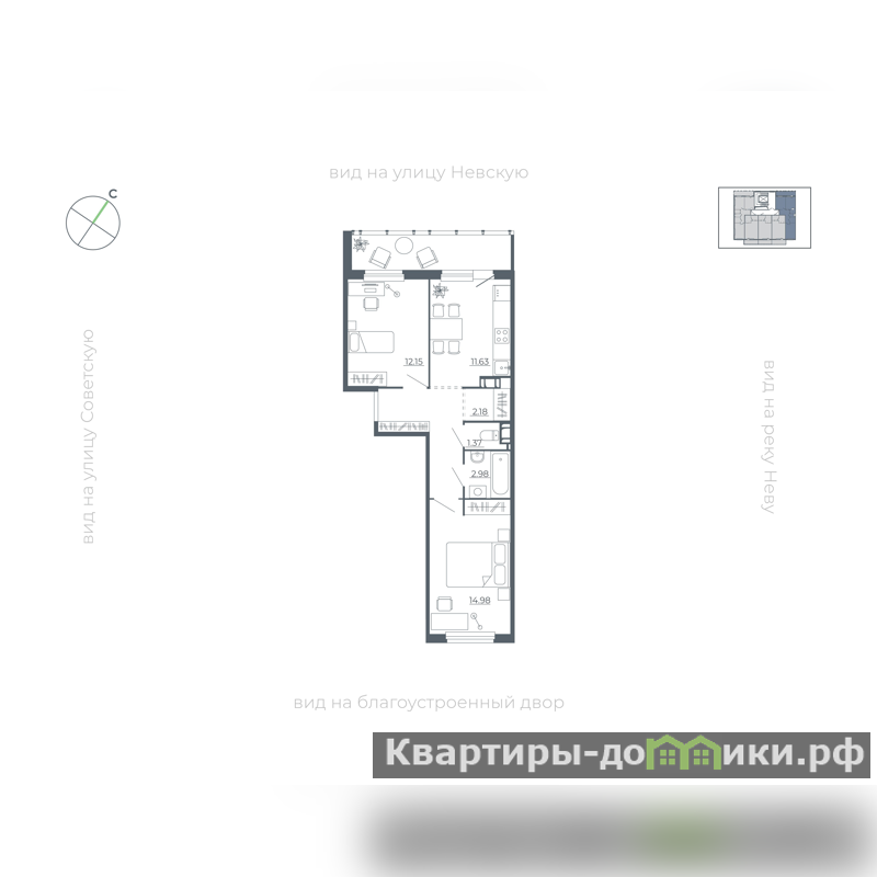 Квартира располагается на 5 этаже 5-этажного дома в ЖК Невский берег.