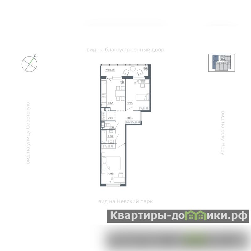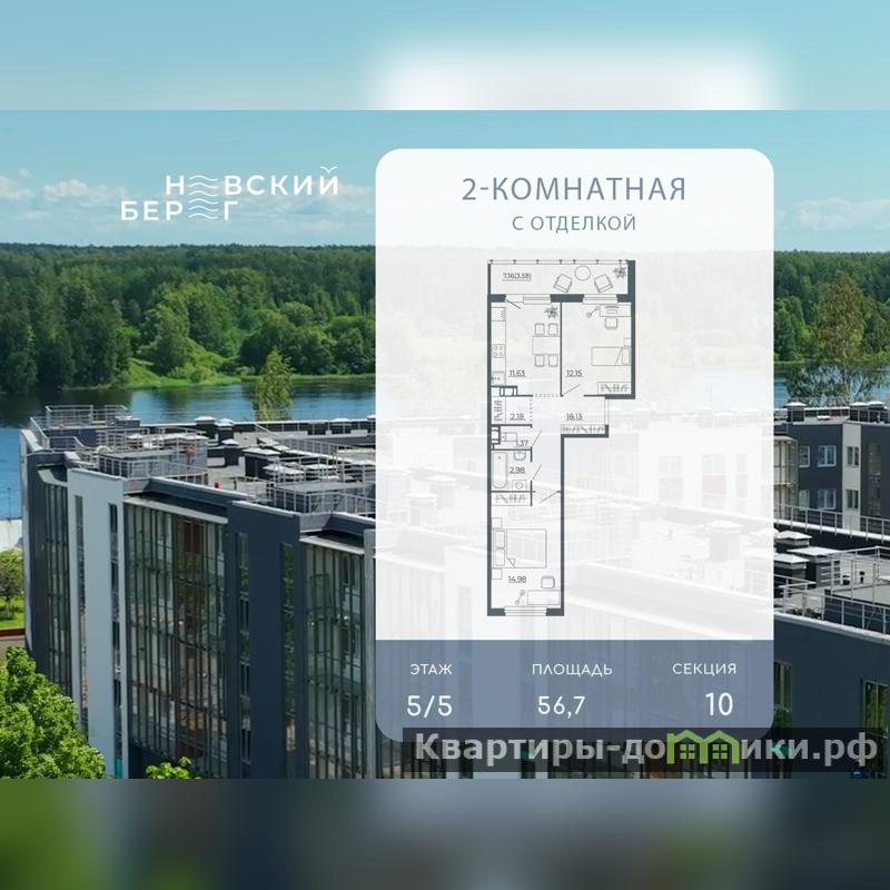 Квартира располагается на 5 этаже 5-этажного дома в ЖК Невский берег.