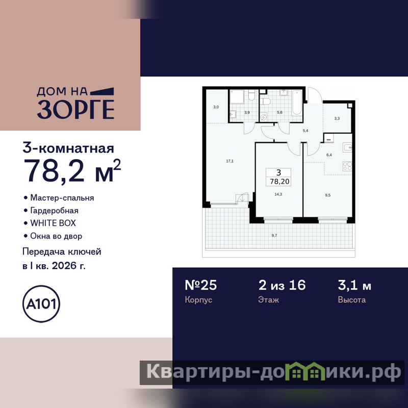 Трехкомнатная квартира с европланировкой и предчистовой отделкой в ЖК "Дом на Зорге" на 2 этаже. Общая площадь: 78.2 кв.м., жилая: 43.9 кв.м., общая площадь гостиной-столовой с кухонной зоной: 15.9 кв.м. Европланировка, площадь комнат позволяет разместить в них все необходимое, а в просторной кухне-гостиной удобно как готовить, так и отдыхать. Комнаты изолированные, все окна выходят на одну сторону. В квартире один балкон, два совмещенных санузла. Терраса размером 27 кв.м. представляет собой роскошную зону отдыха, где вы на свой вкус можете создать атмосферу комфорта и уюта. Высота потолков 3.1 м.