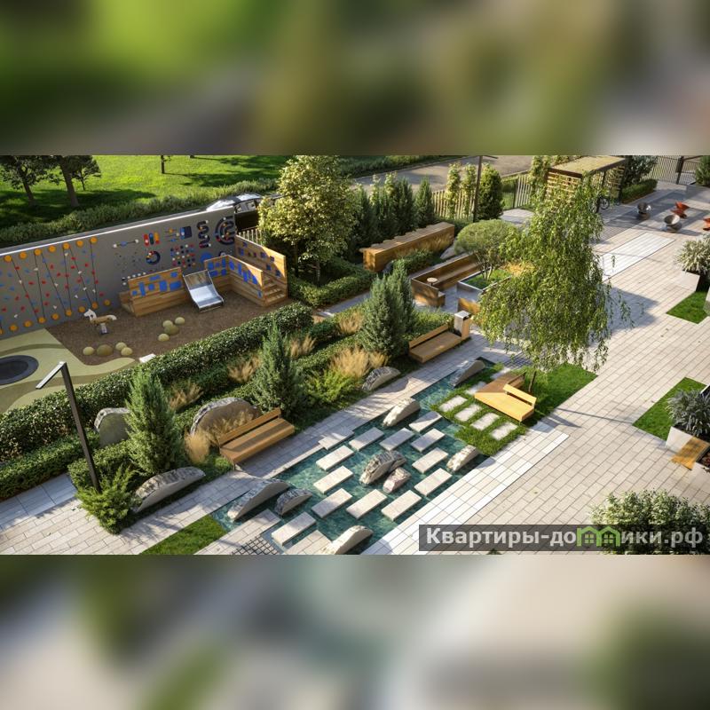 На территории дома будут благоустроены общий и приватный (доступный только жителям) дворы. Дизайн каждой функциональной зоны уникален, а вместе они подчёркивают благородный архитектурный стиль здания. В основе цветовых решений – отражение фасадов, мягкие природные оттенки. (AQID02221153)