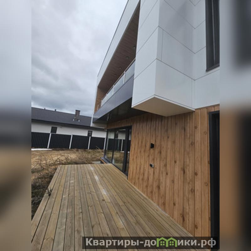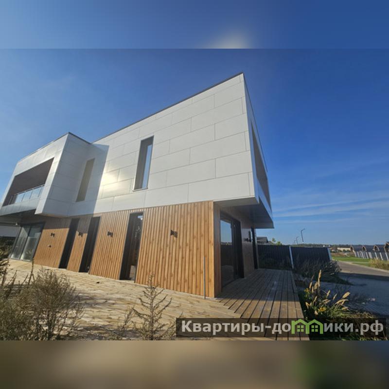 Арт. 45239093 Продаем просторный современный, дом в стиле "Хай тек". Очень качественная постройка, усиленный фундамент, монолитный каркас, кладка керамические блоки "паротерм", фасад из "Алюкабонда", оконные рамы цвета графит. В наличии имеется дизай-проект, покупателю передаем в подарок.Просторные холлы, сияющее панорамное остекление, благородный фасад.Участок прямоугольной формы, ровный, просторный, находится в комьюнити "Брайт парк". Участок огорожен, заезд для автомобиля, калитка, выложена вокруг дома брусчатка.Возможна ипотека, использование материнского капитала.ХАРАКТЕРИСТИКА ДОМА EL400 Общестроительные решения:- Фундамент: буронабивные сваи, монолитный ростверк, монолитная плита (выбор фундамента зависит оттипа грунта на участке и осуществляется ООО Корнер).Наружные стены: 520 мм - керамический камень 2.1НФ 380 мм либо крупно форматный блок 380 мм поризованый, утеплитель каменная вата плотностью 120 кг/м3 толщиной 100 мм, облицовка фасада 40 ммс сочетанием из композитных кассет Аlucobond и строганой сосны 1 сорта, обработанной пропиткой подереву от гниения и влаги.Оконные блоки VEKA, Alutеch (при площади остекления свыше 5м2) – поворотно–откидные с 5-ти камерным профилем, 2-х камерным стеклопакетом; наружные откосы с установкой отлива.Кровельный пирог – на плиту перекрытия Биполь ЭПП, экструзированный пенополистирол, праймер битумный, унифлекс ВЕНТ, техноэласт, наружный открытый водосток.Межэтажные перекрытия - железобетонная плита 220мм.Меж чердачное перекрытие – железобетонная плита 220мм.Высота потолков черновая: 1 этаж – 3 м., 2 этаж – 3 м.Лестница – монолитная шириной не более 1 метра.Металлическая входная дверь с терморазрывом полотна 24 мм, толщиной полотна 110 мм, наполнениеPIR-плита, 3 контура вставного уплотнителя, на трех петлях, открывание 180 градусов, с основным и дополнительным замками, накладками от сквозняков, тремя противосъёмными штырями, внутренней белой отделкой МДФ 22 мм.Обустройство отмос...