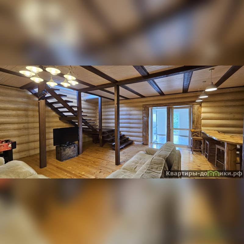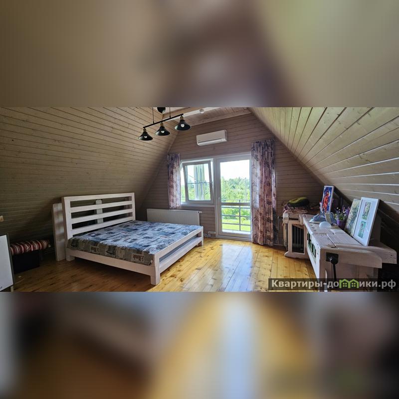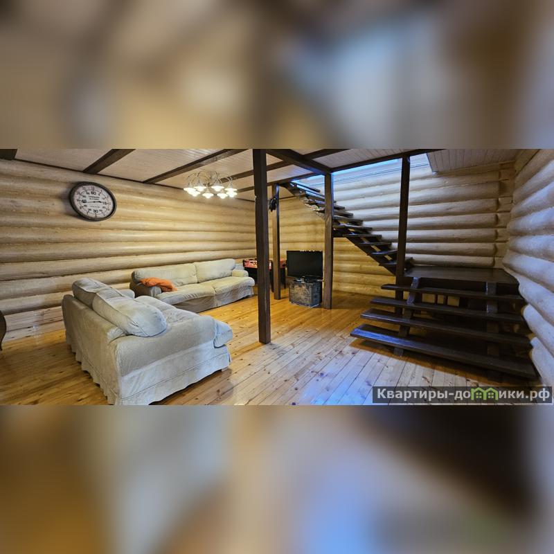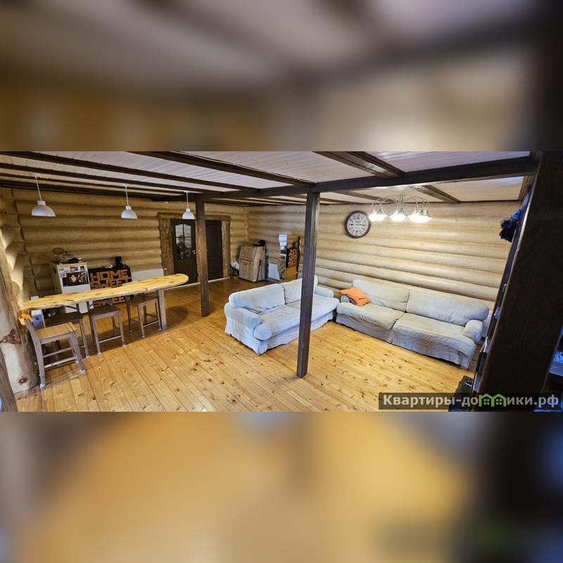 Дом площадью 167 кв.м из оцилиндрованного бревна (диаметр 30 см), имеет пристройку Г-образной формы из бетонных блоков. Ленточный фундамент в 2 м. образует цокольный этаж, который можно использовать как погреб. Крыша утеплена и накрыта металлочерепицей, перекрытия железобетонные. Дом утеплен снаружи и обшит сайдингом.