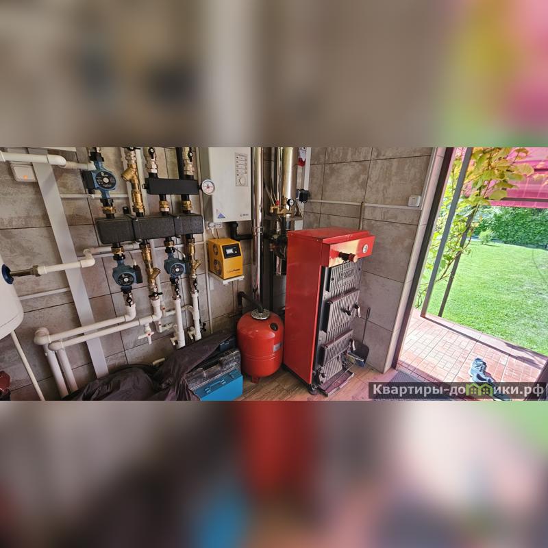 Отдельного внимания достойны коммуникации - все продумано до мелочей. В доме есть два котла - электрический и твердотопливный, которые сообщаются между собой и отопление может переключаться автоматически. Электрический котёл легко управляется дистанционно, через приложение. Блок бесперебойного питания с аккумулятором, который позволяет продолжить автономную работу котла до 8 часов на случай отключения электричества. Вода подается в дом из колодца в 28 колец. Водонагреватель на 120 литров может нагревать воду от внутренних тэнов, а также с помощью котла. Водоотведение из туалета происходит в септик, который состоит из трех секций (две секции по 4 кольца и последний в два кольца), из кухни, ванны и душа вода уходит в специальный дренаж. Электричество подается от СНТ. Вся система удобна в управлении и эксплуатации, справиться может любой.