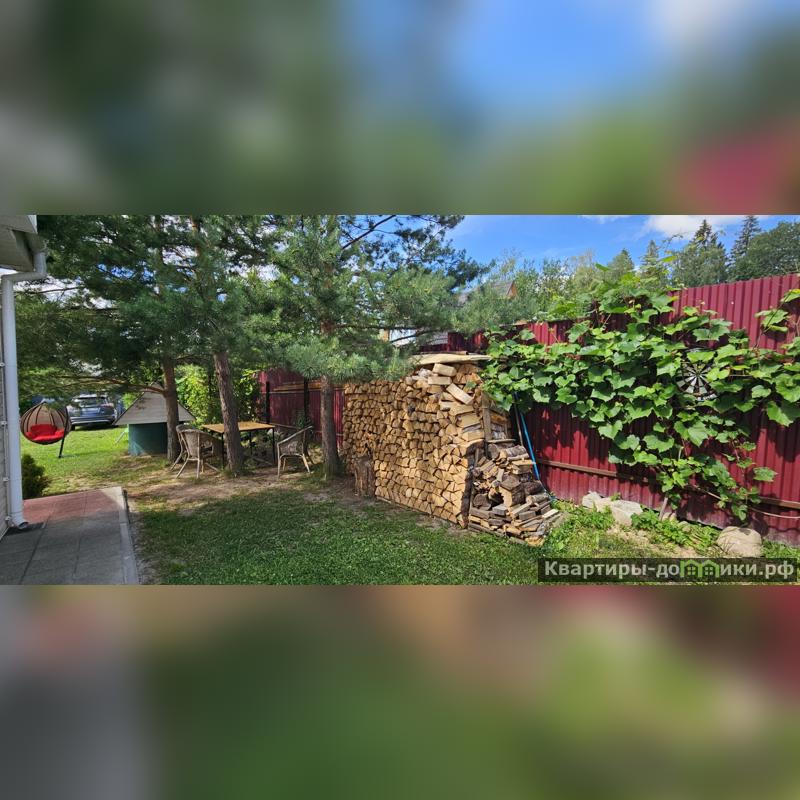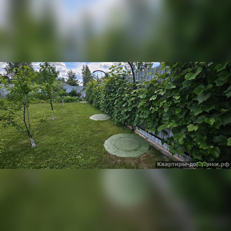 Участок, на котором расположен дом имеет прямоугольную форму, огорожен забором и имеет ворота для въезда машины. По периметру растет виноградник сорта "Изабелла". Растет сладкая черешня, яблони и груши, также есть восьмиметровая теплица с урожаем овощей. Дополнительно на участке есть хозблок, навес для велосипедов и дровяник с годовым запасом дров. На участок заведена центральная вода от СНТ, которую можно использовать для полива в летнее время.