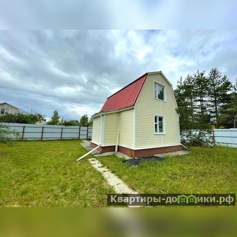 Каркасный дом утеплен, обшит сайдингом, фундамент ленточный, крыша покрыта металлочерепицей. Общей площадью 50,4 кв.м. На первом этаже две изолированные комнаты и одна проходная. Второй этаж: одна большая комната.
