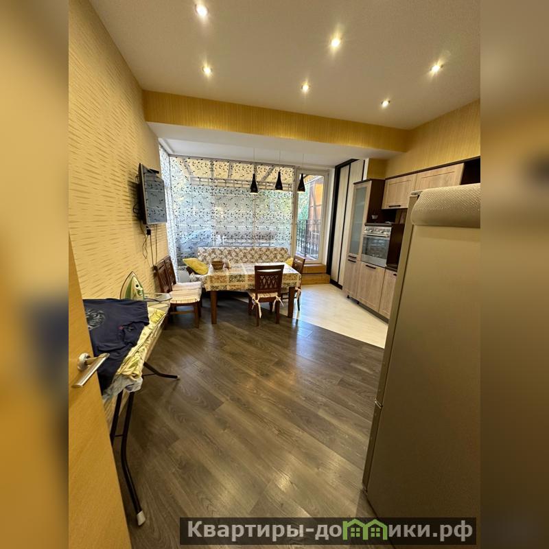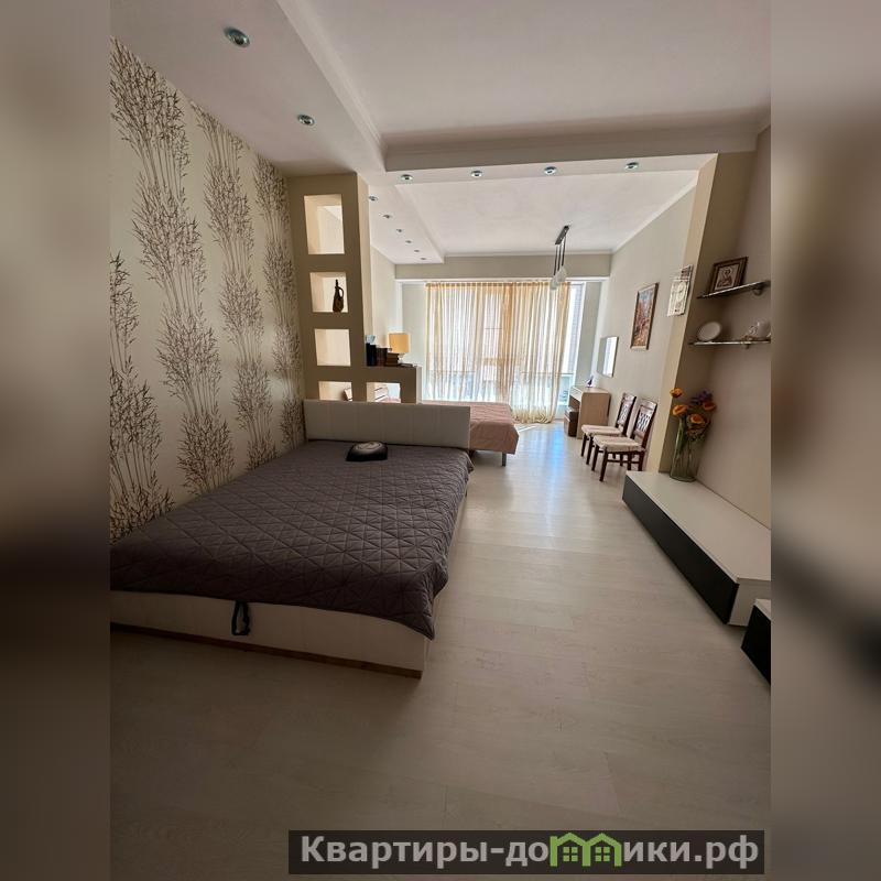 Квартира распланирована в большую комнату-спальню, кухня гостиная с выходом на террасу 8м2, и просторная ванная комната. Вся мебель и техника остается.