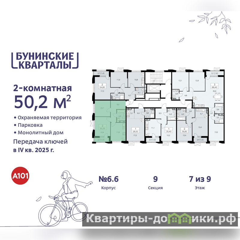 Дом монолитный, двухподъездный, высотой 9 этажей. Квартира находится в 1-й секции в корпусе бизнес-класса 6.6. На этаже 6 квартир. В подъезде 1 грузовой лифт. Начало строительства - 3 квартал 2023 года. Окончание строительства - 4 квартал 2025 года. Оформление сделки по договору долевого участия.