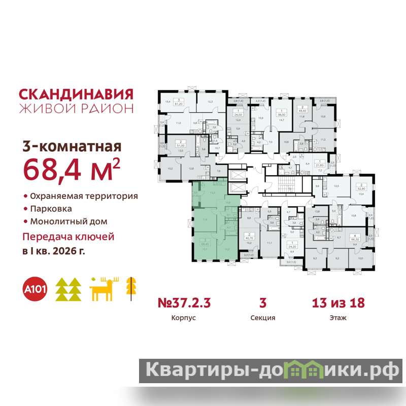 Квартира находится в корпусе 37.2.3. Дом монолитный, одноподъездный, высотой 18 этажей. На этаже 11 квартир. В подъезде 2 грузовых лифта. Начало строительства - 3 квартал 2023 года. Окончание строительства - 1 квартал 2026 года. Оформление сделки по договору долевого участия.