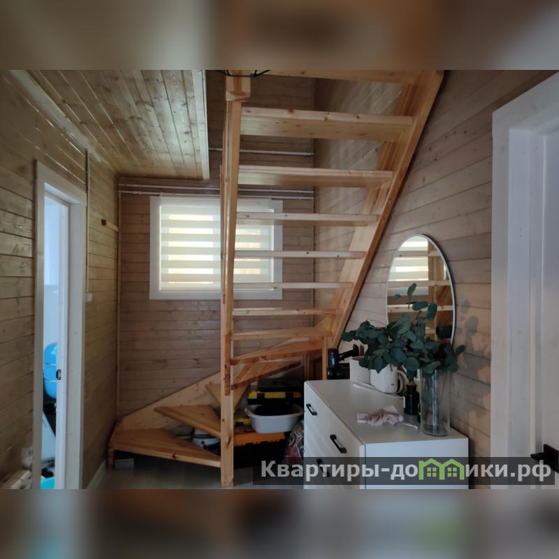 Поворотная деревянная лестница соединяет между собой этажи.