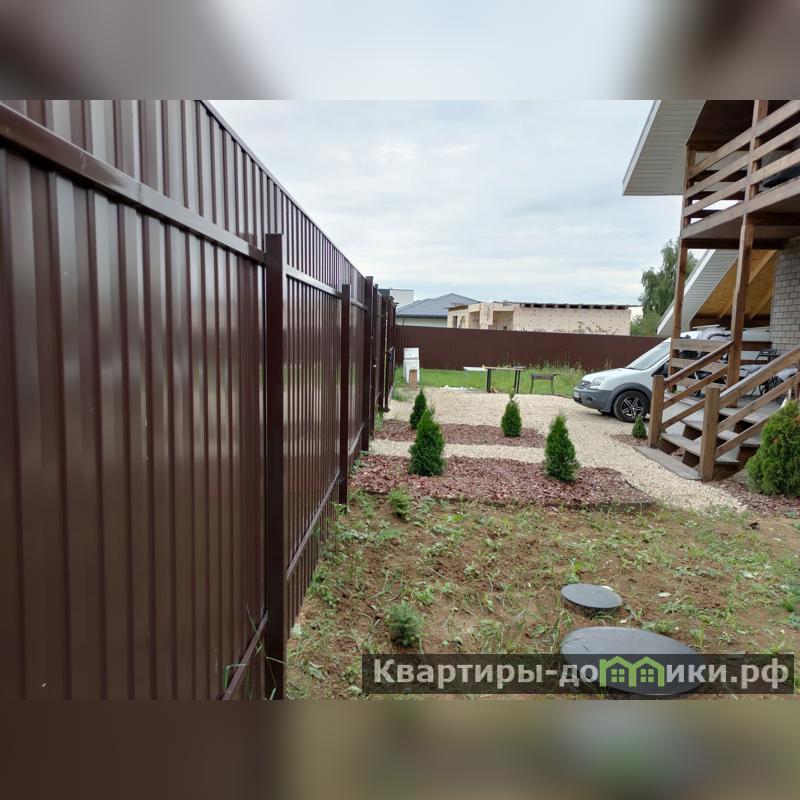 Тип фундамента - винтовые сваи, материал стен - брус, крыша - металло-черепица, окна - стеклопакеты, высокий уровень отделки. Участок огорожен забором со всех сторон (проф. настил).