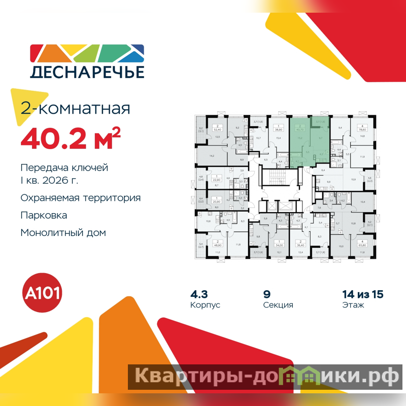 Квартира находится в корпусе 4.3. Дом монолитный, одноподъездный, высотой 15 этажей. На этаже 10 квартир. В подъезде 1 пассажирский и 1 грузовой лифт. Начало строительства - 3 квартал 2023 года. Окончание строительства - 1 квартал 2026 года. Оформление сделки по договору долевого участия.