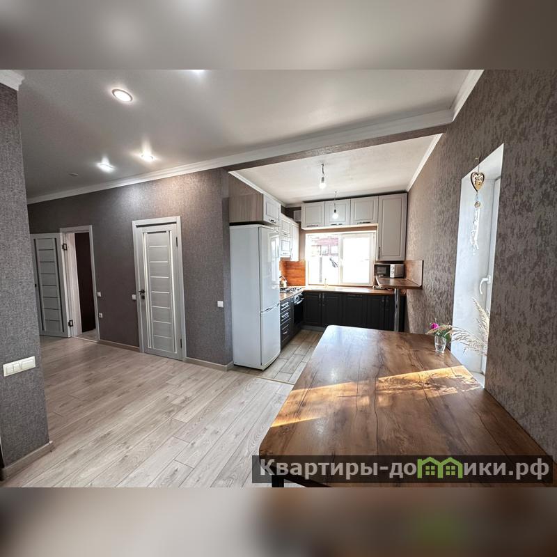 Продаётся 1-эт. дом ст. Динская, ул. Российская, 87/ 36/ 25, кирп. 2019 г. постройки. Высокое неподтопляемое место, престижный район. 3 изолированные комнаты, кухня-гостиная, санузел, прихожая, просторный коридор. Хороший ремонт, тёплые полы плитка, ламинат. Остаётся кухонный гарнитур со встроенной техникой, посудомоечная машина, духовой шкаф, холодильник, а также сплит-система, стенка под тв, диван, стол, табуретки, шкафы в прихожей. Металлопластиковые окна, металлическая дверь. Угловой земельный участок 3.3 сотки, ИЖС. Забор по периметру. 2 навеса, двор забетонирован под 4 авто. Широкая придомовая территория, отлично для парковки грузовых авто. Газ, вода, эл-во 3 фазы 10 кВт., центральные, септик. Все фото соответствуют. В станице 4 школы, бассейн, дет. сад, магазины, парк, церковь, вся инфраструктура. Тихое спокойное место. Рядом протекает широкая р. Кочеты, где можно отлично порыбачить и отдохнуть. Рассмотрим ипотеку всех видов.