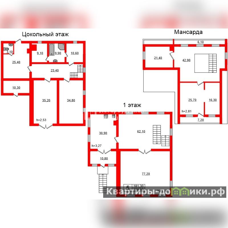Первый этаж: гостиная 62 кв.м., кухня 30,9 кв.м., комната 77,2 кв.м. Мансарда (второй этаж): холл 43 кв.м., спальня 21 кв.м., спальня 25,7 кв.м., спальня 16,3 кв.м., 2 балкон (6 кв.м. и 7 кв.м.). На участке тех.помощения, сарай, уличный туалет. Вся необходимая мебель и техника, много спальных мест.