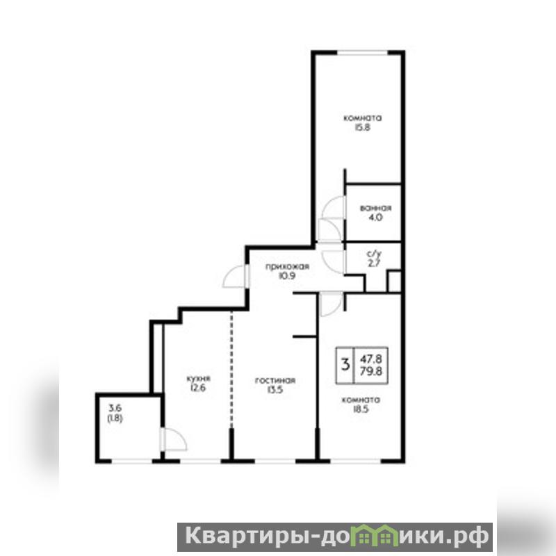 | 15.8 + 13.5 + 18.1 м2 | |