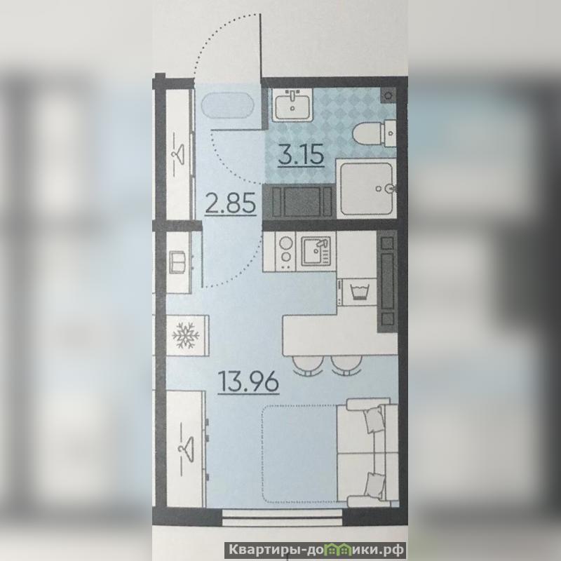 Квартира студия (19,98м2) с качественной отделкой от застройщика