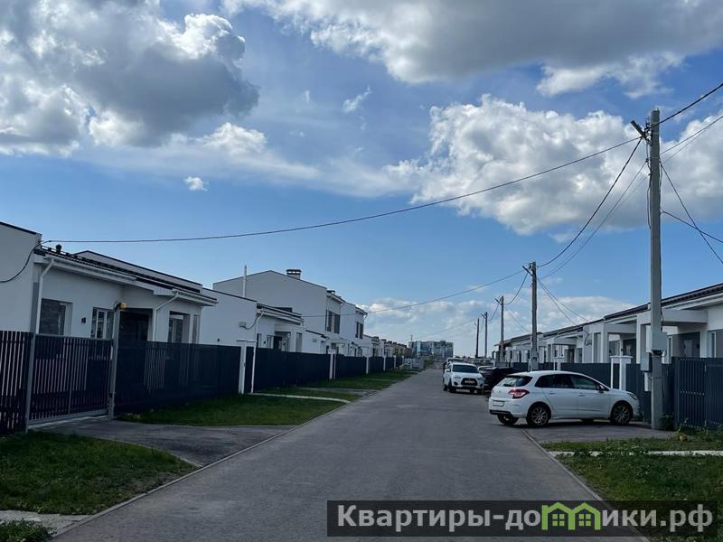 Все коммуникации газ, вода, электричество заводятся в дом и подключаются, установлен газовый котел, система теплый пол по всему дуплексу. Вода из скважины, у каждого дуплекса индивидуальная выгребная яма, забор между участками.