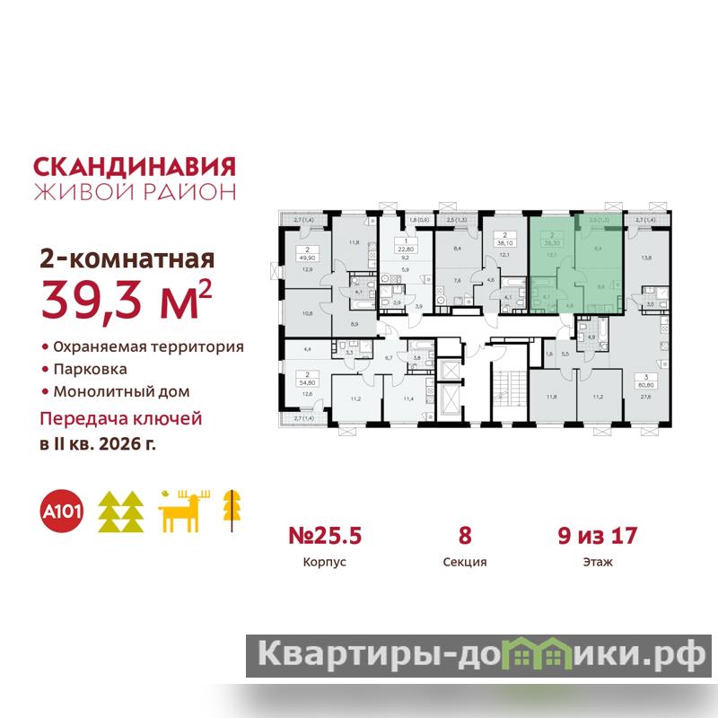 Дом монолитный, трехподъездный, переменной этажности, от 12 до 17 этажей. Квартира находится в 1-й секции высотой 12 этажей в корпусе бизнес-класса 25.5. На этаже 6 квартир. В подъезде 1 пассажирский и 1 грузовой лифт. Начало строительства - 4 квартал 2023 года. Окончание строительства - 2 квартал 2026 года. Оформление сделки по договору долевого участия.