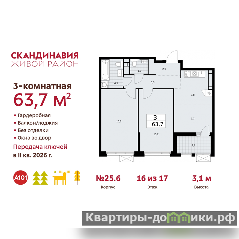 | 7.7 + 15.2 + 16.3 м2 | |